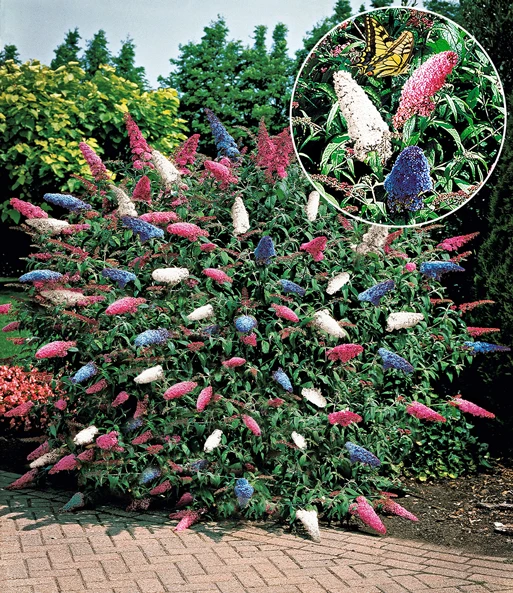 De bloeiende struiken collectie bestaat uit 1 vlinderstruik Papillion-Tricolor en 1 lagerstroemia.