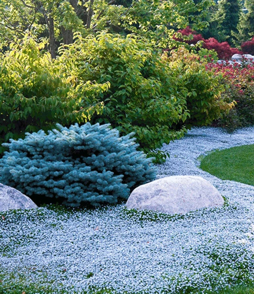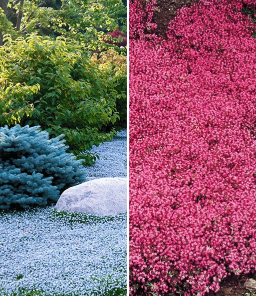 De bodembedekker collectie rood en blauw bestaat uit 3 planten bodembedekker tijm en 3 planten.isotoma Blue Foot®.