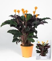 De tropische, oorspronkelijk uit Brazilië stammende kamerplant Calathea Crocata is een bijzonder sierraad, ook als cadeau voor vrienden en familie! Naar het motto “vochtig maar niet nat” wordt deze schoonheid gehouden. Ze verspreidt door haar opvallende tweekleurige bladeren en de exotische knoppen vele weken lang echte vreugde in huis en op kantoor. Het grote blad van de Calathea Crocata plant is aan de bovenkant blauw-groen gekleurd en aan de onderkant paars-rood. Deze attractieve kamerplant wordt ook Tassmania genoemd.