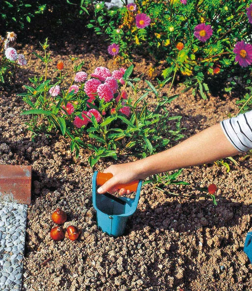 De GARDENA® Bloembollenplanter is gemaakt van hoogwaardig en duurzaam kwaliteitsstaal met een Duroplastische coating ter bescherming tegen corrosie. Met de GARDENA® bollenplanter wordt het planten van bollen in de tuin kinderspel.