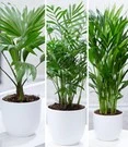(Livistona rotundifolia, Dypsis lutescens areca, Chamaedorea elegans)