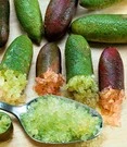 Deze exotische citrusplant limoenkaviaar is het “gesprek van de dag”. Het binnenste van de vrucht kan uit de opengesneden vrucht van de limoenkaviaar worden gedrukt en lijkt dan op kaviaar!