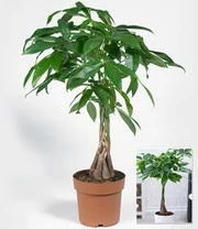 De watercacao of geldboom, zoals de Pachira Aquatica ook genoemd wordt, is afkomstig uit Zuid-Amerika. De groenblijvende kamerplant ontwikkelt zich als een klein boompje. Na verloop van tijd vormt de Pachira Aquaticaeen licht verdikte, houtachtige voet. Dat ziet er bijzonder attractief uit. In Azië geloven de mensen dat de watercacao welvaart en geluk brengt. Bij ons is het decoratieve karakter van de plant doorslaggevend en is daardoor zeer geliefd als kamerplant in huis of op kantoor.