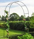 Deze bijzonder voordelige rozenboog is vooral kenmerkend door zijn eenvoudige montage. De rozenboog is niet alleen de geschikte rankhulp voor klimrozen, ook lelies of andere vaste planten genieten van de aangeboden hulp. Ronde buizen van staal (doorsnee 16 mm), zwart gelakt met groene punten.