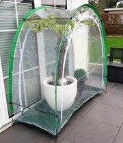 De winterbeschermingstent Arctic is snel op te zetten in de tuin, op het balkon of terras. Binnen in het ruime interieur vinden grote en kleine planten veel ruimte. De UV-bestendige folie is transparant en lichtdoorlatend. De grote ingangen aan de voor- en achterkant zorgen moeiteloos voor de nodige luchttoevoer en de bewatering gebeurt in een mum van tijd. De winterbeschermingstent Arctic is ideaal voor alle tuinliefhebbers, die geen kas bezitten! Het is niet nodig om de kuipplanten te verplaatsen, de planten worden zo ook niet blootgesteld aan de druk van een verandering van locatie bij gewijzigde lichtomstandigheden. Vanaf nu kunnen uw waardevolle kuip- en potplanten gewoon buiten bijven in de mobiele kas.